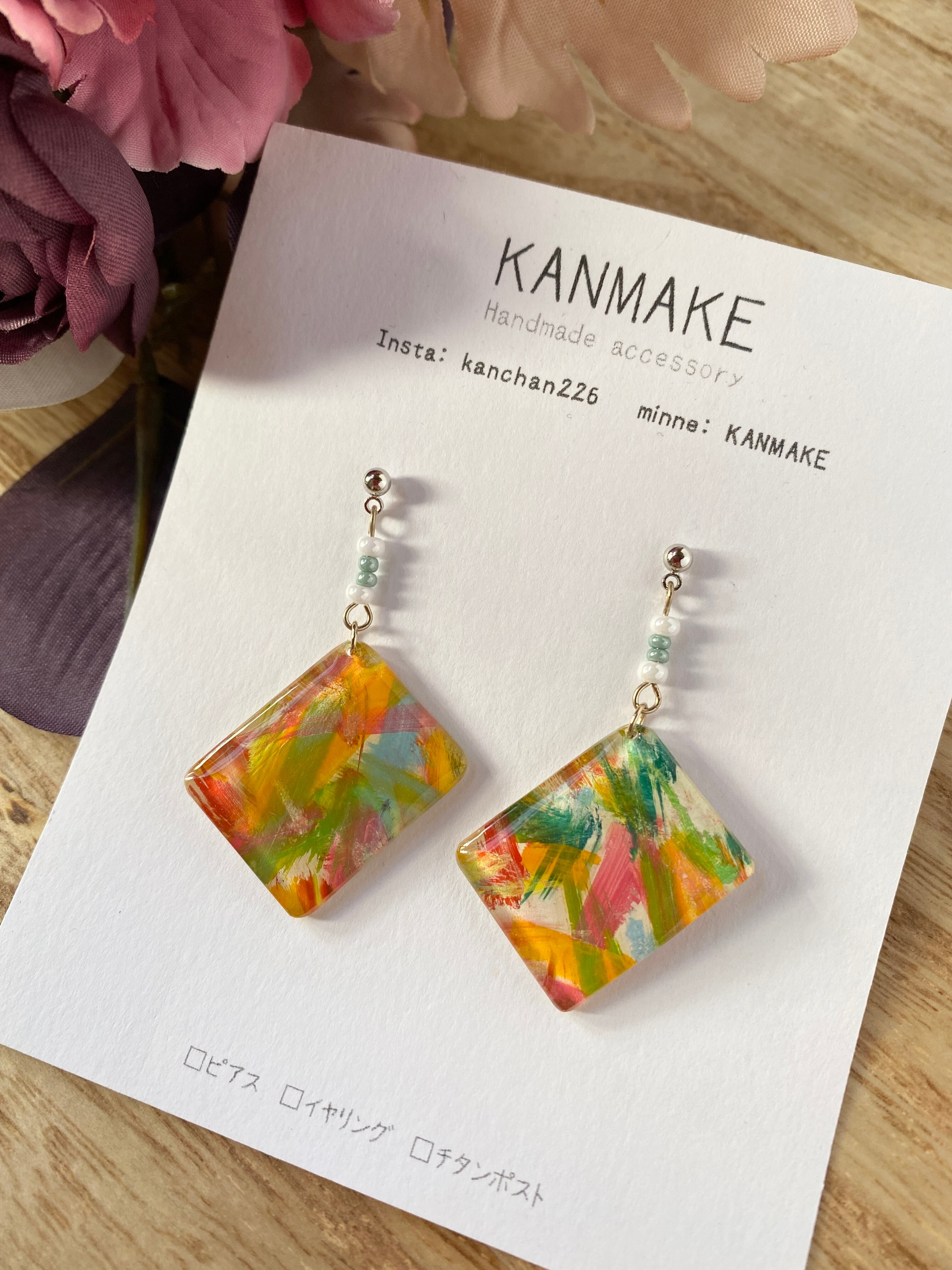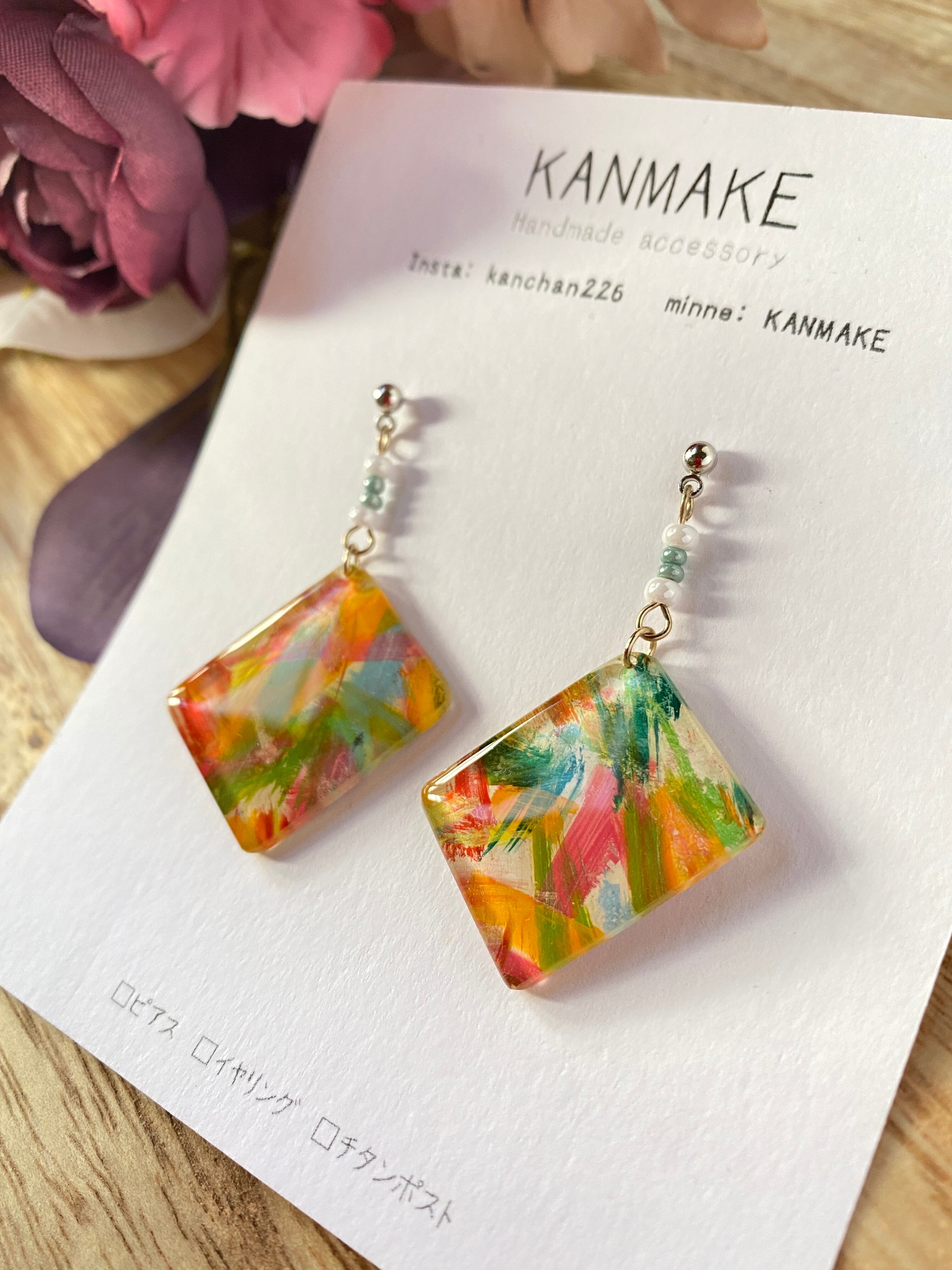 ピアス かすれ柄ピンク系【イヤリング変更可】