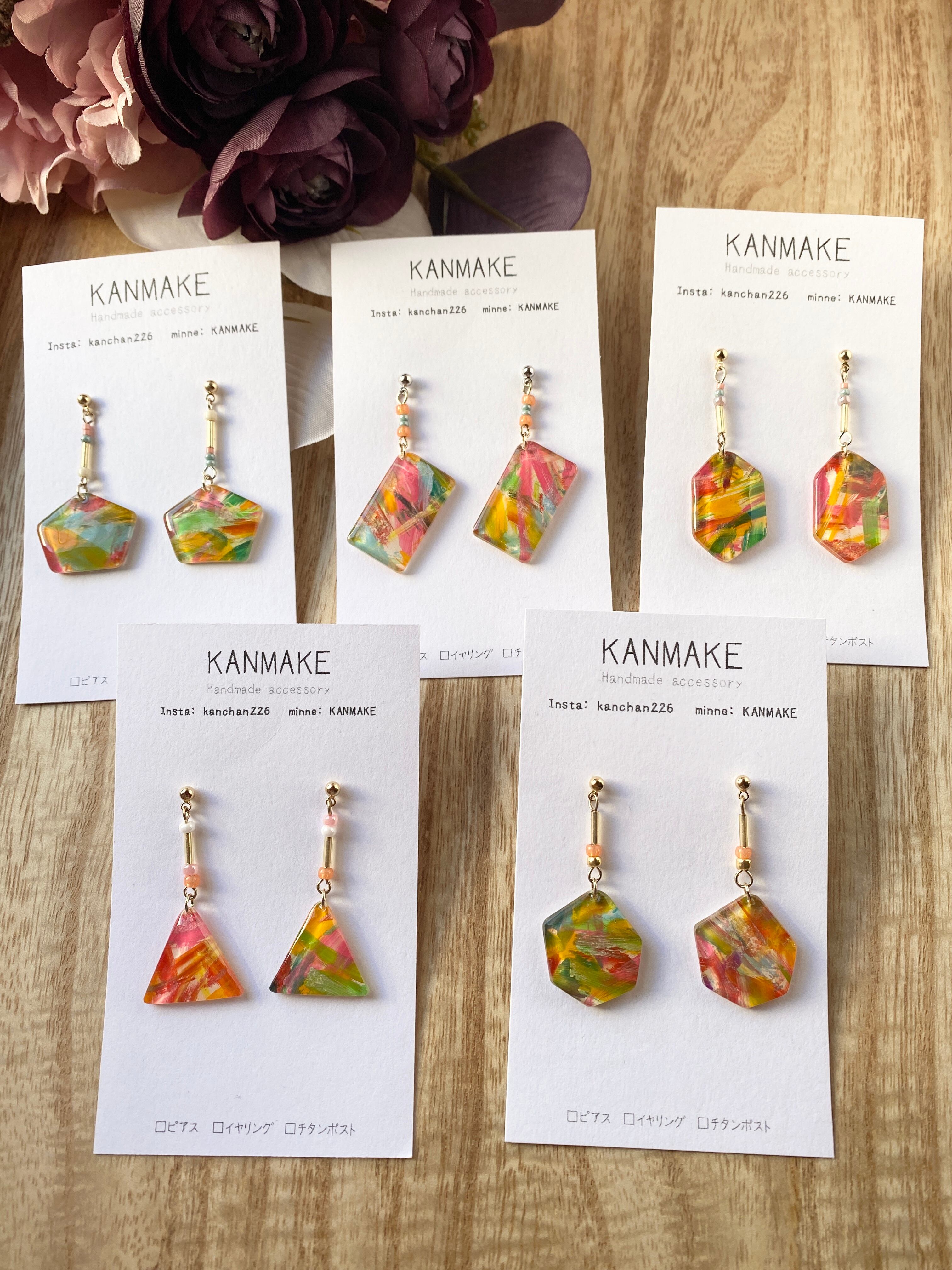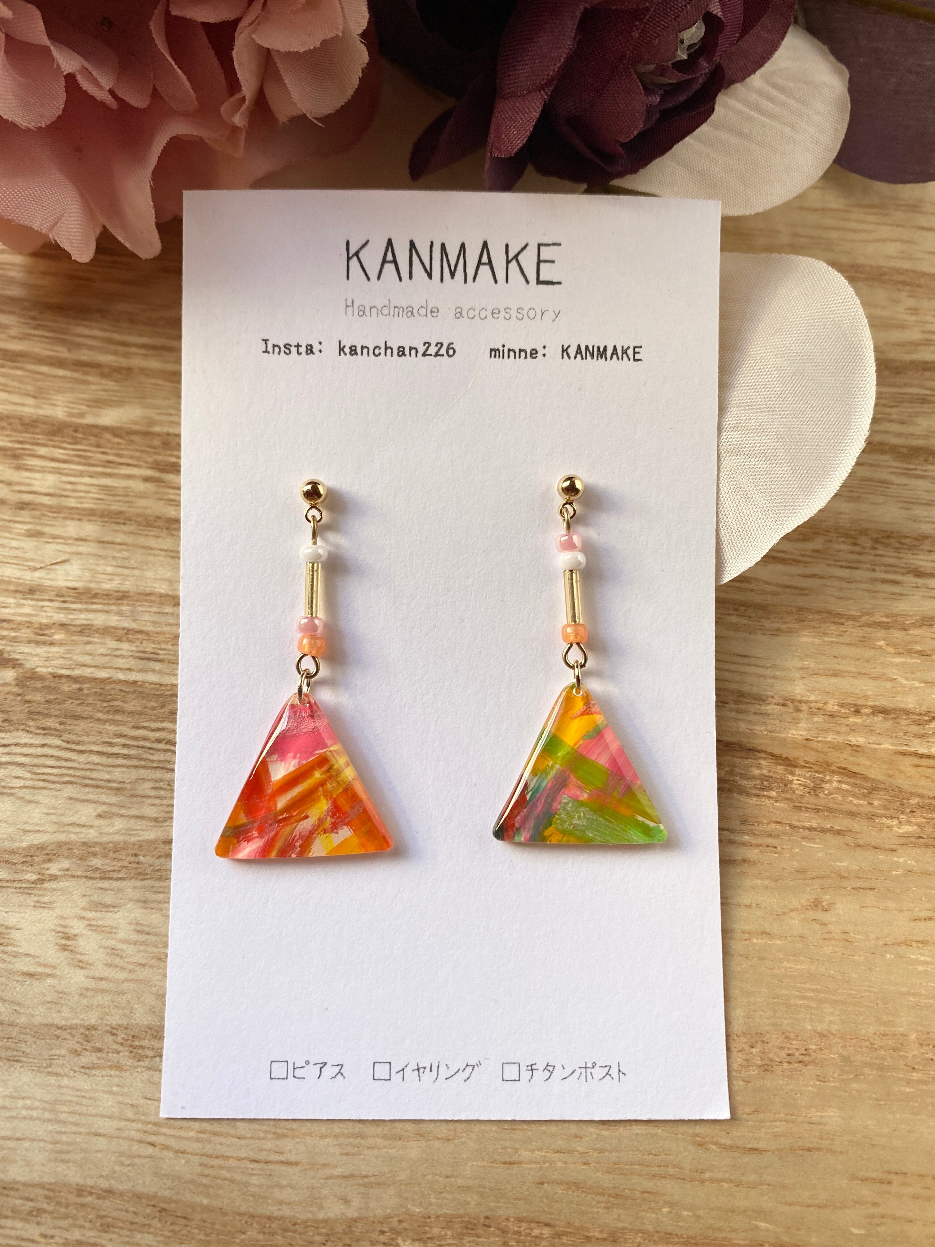 ピアス かすれ柄ピンク系【イヤリング変更可】