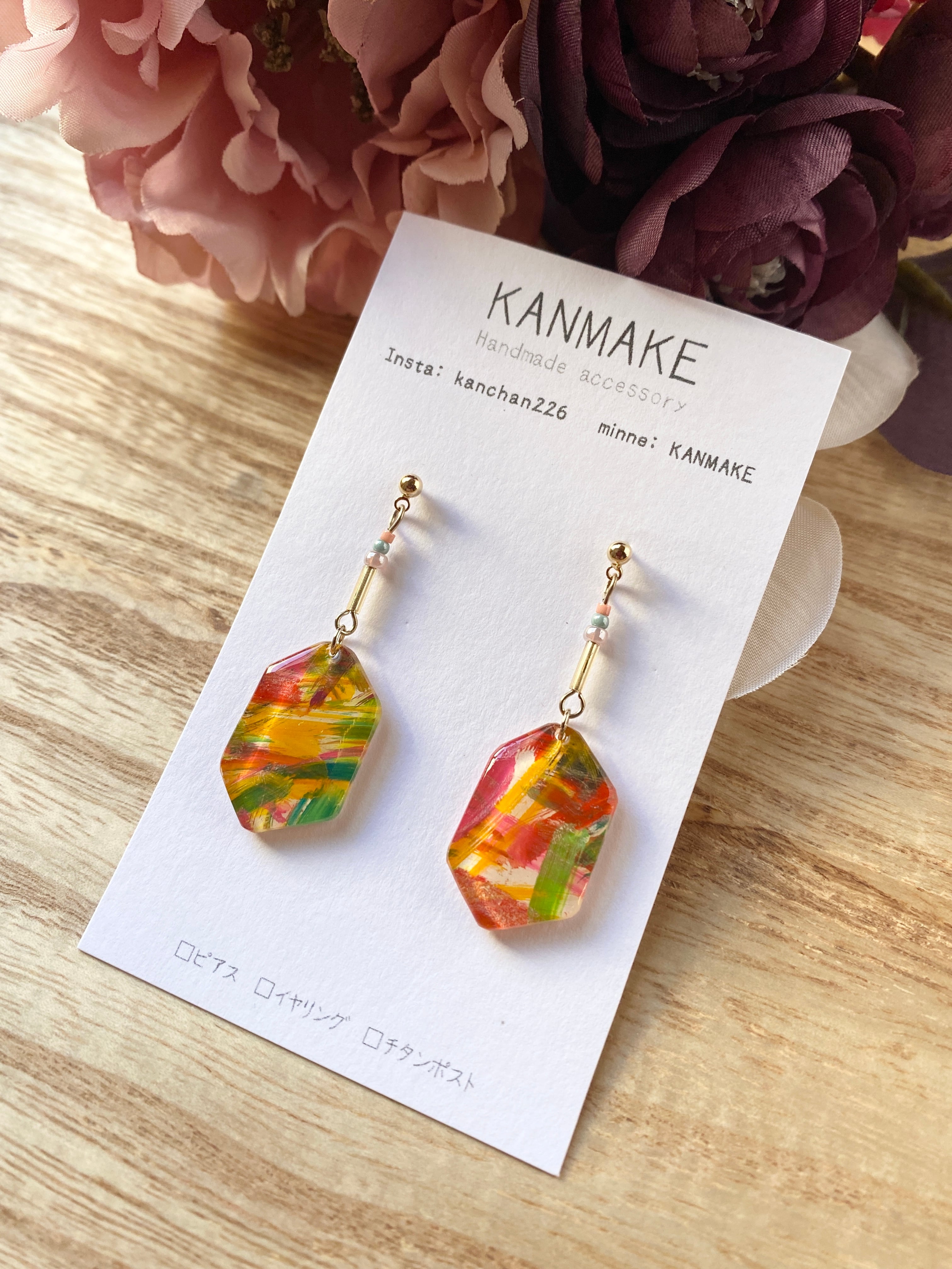 ピアス かすれ柄ピンク系【イヤリング変更可】