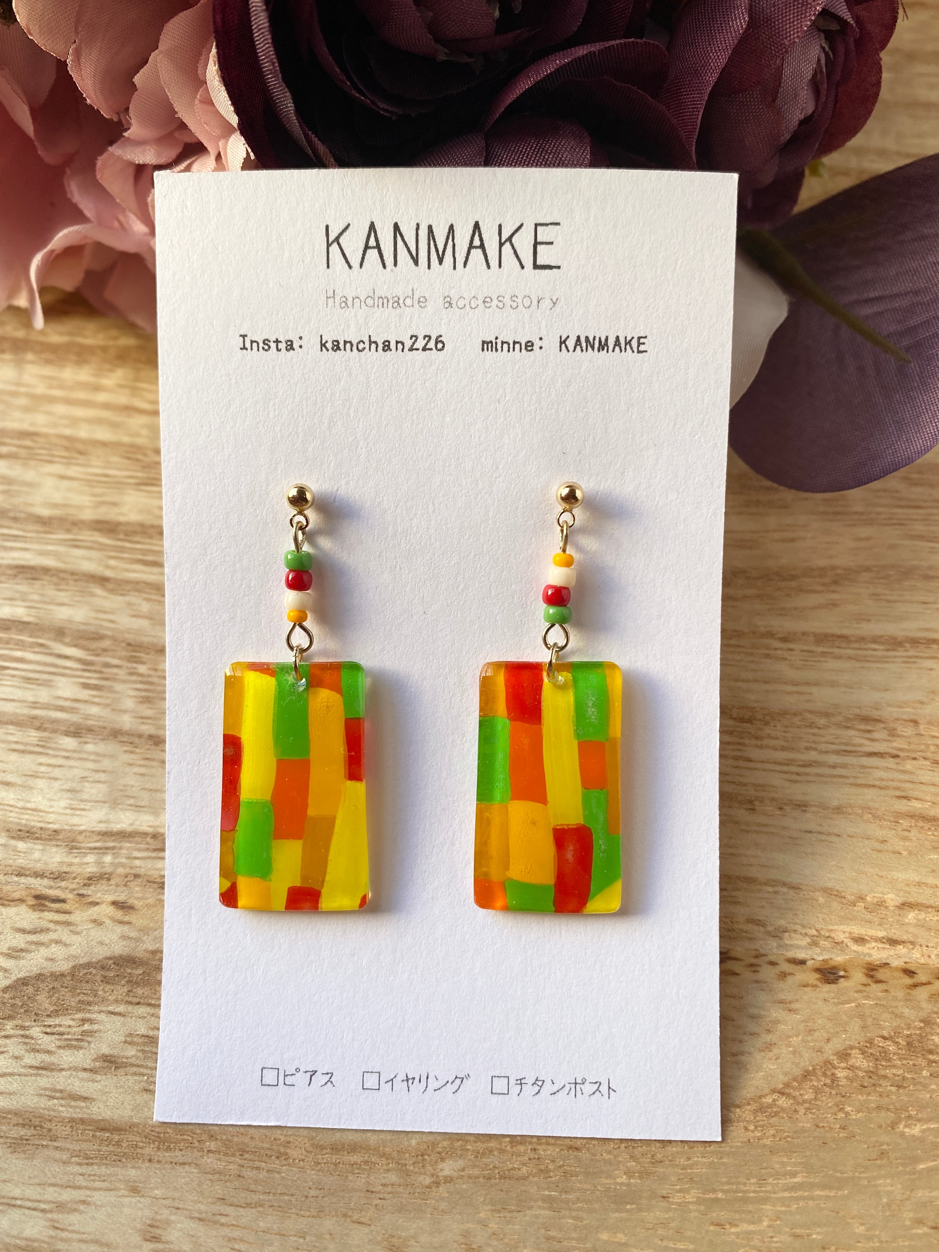ピアス ブロック柄【イヤリング変更可】